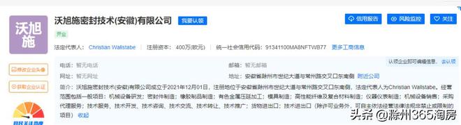 沃旭施密封技术(安徽)有限公司以337万拿下了常州路东侧、世纪大道与镇江路之间的地块,其营业范围包括一般项目:机械设备研发;密封件制造;橡胶制品制造;有色金属压延加工;模具制造;高性能纤维及复合材料制造;仪器仪表制造;机械设备销售;采购代理服务;技术服务、技术开发、技术咨询、技术交流、技术转让、技术推广;货物进出口;技术进出口等。