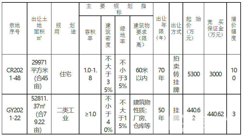 2、CR2021-48号宗地转挂牌报名竞买、缴纳保证金开始时间2022年3月1日8时;截止时间2022年3月10日17时。